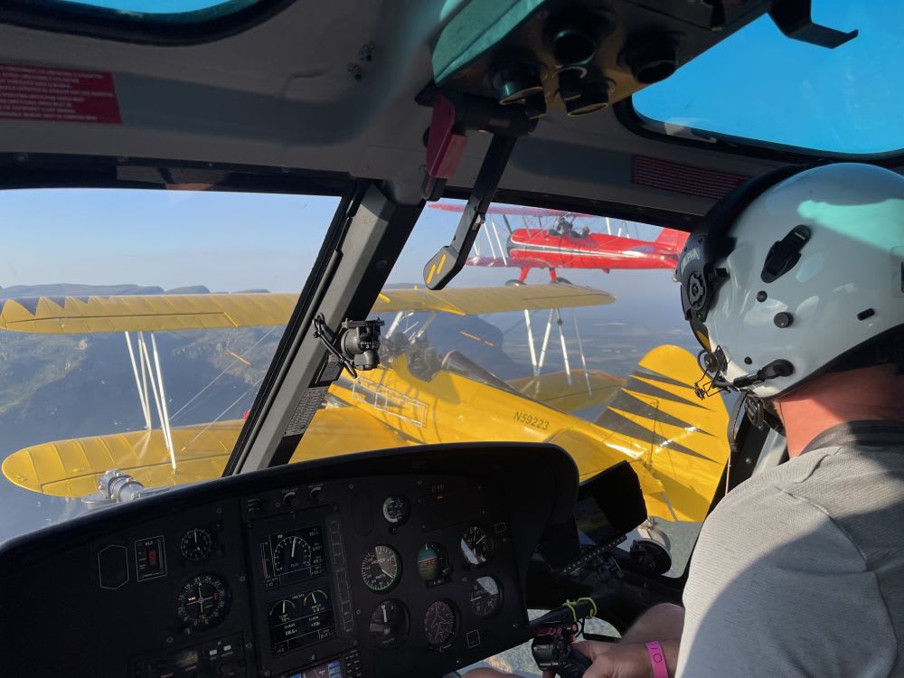 “But of course, we had to then be super close to the target aircraft to fill the frame - so we had to be eating these planes,” Banks continues of the helicopter from which he, Arntz and the aerial team captured the shots. “There were times when you do sort of pinch yourself. It was pushing the limits of proximity flying that was made to look out of control.”