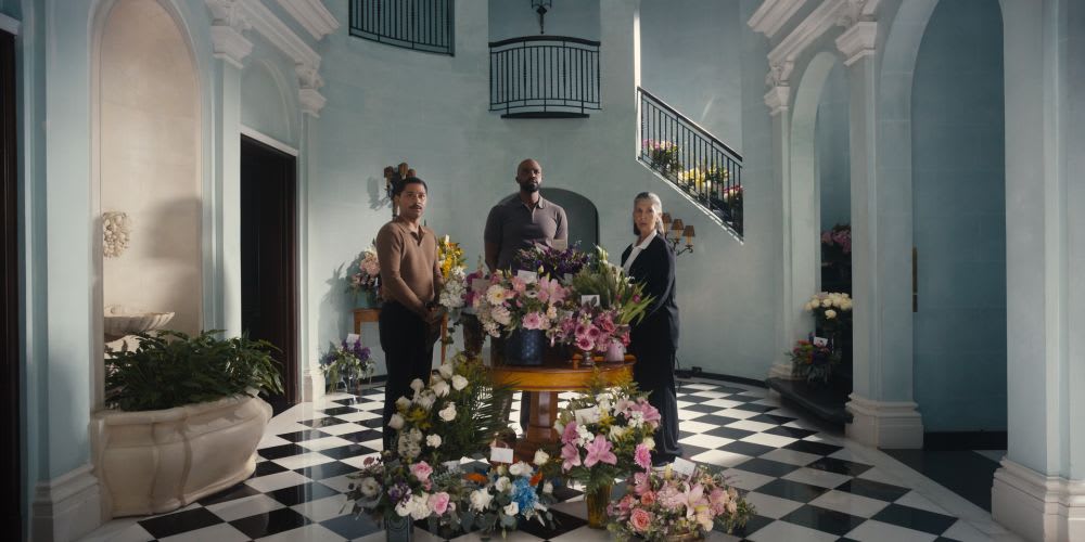 Mark Indelicato as Damien, Carl Clemons-Hopkins as Marcus, Rose Abdoo as Josefina inside the LA House; Source: Max